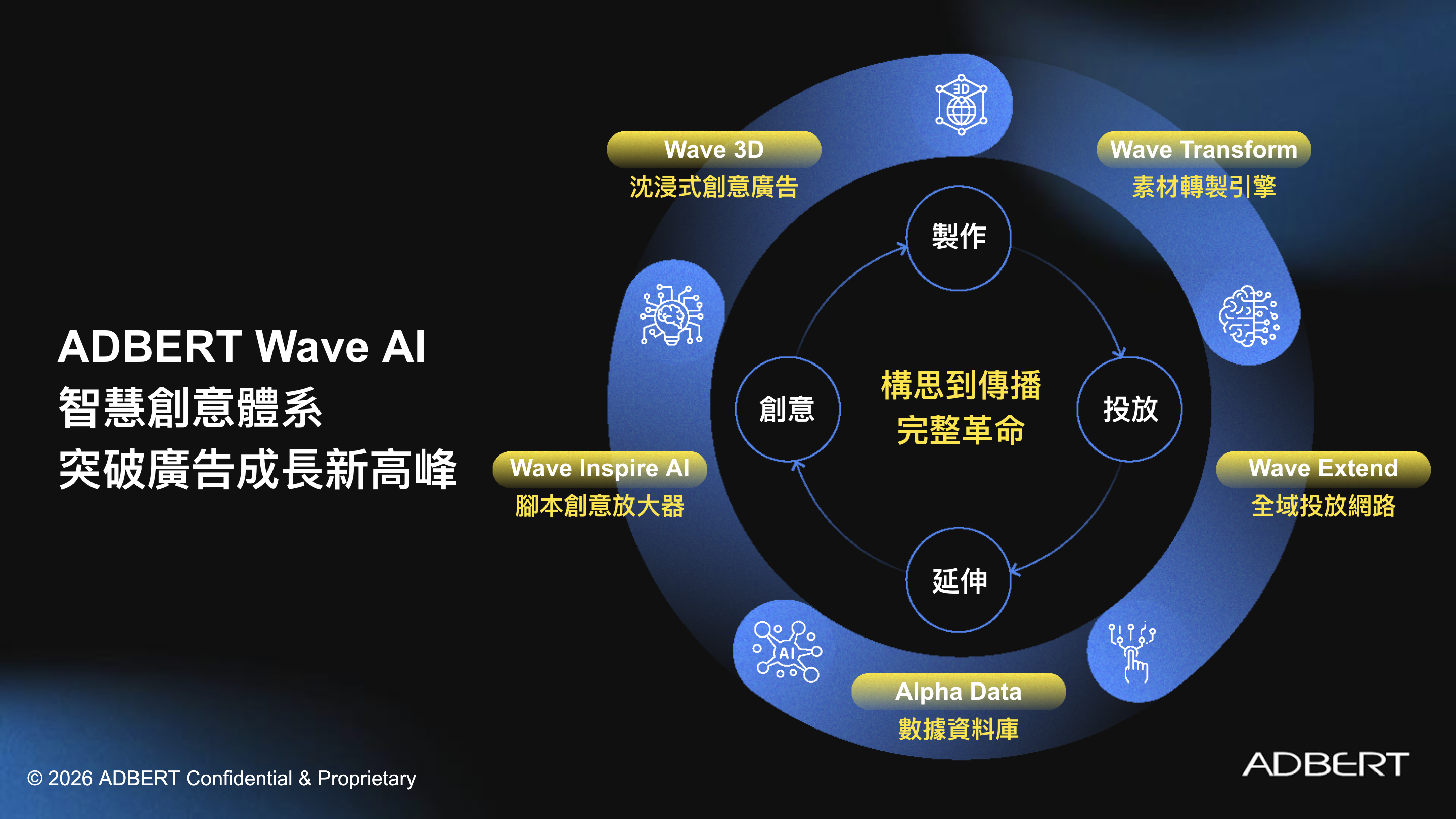 隨著數位廣告流量紅利趨於停滯,傳統2D平面廣告已難以捕捉稀缺的消費者注意力 。創意科技領航者 ADBERT 艾普特媒體 今日正式發表「Wave AI 智慧創意體系」,宣布 2026 年將全面推動廣告視覺從「平面」走向「沉浸 3D」,為品牌建立具備擴張基因的行銷核心資產 。